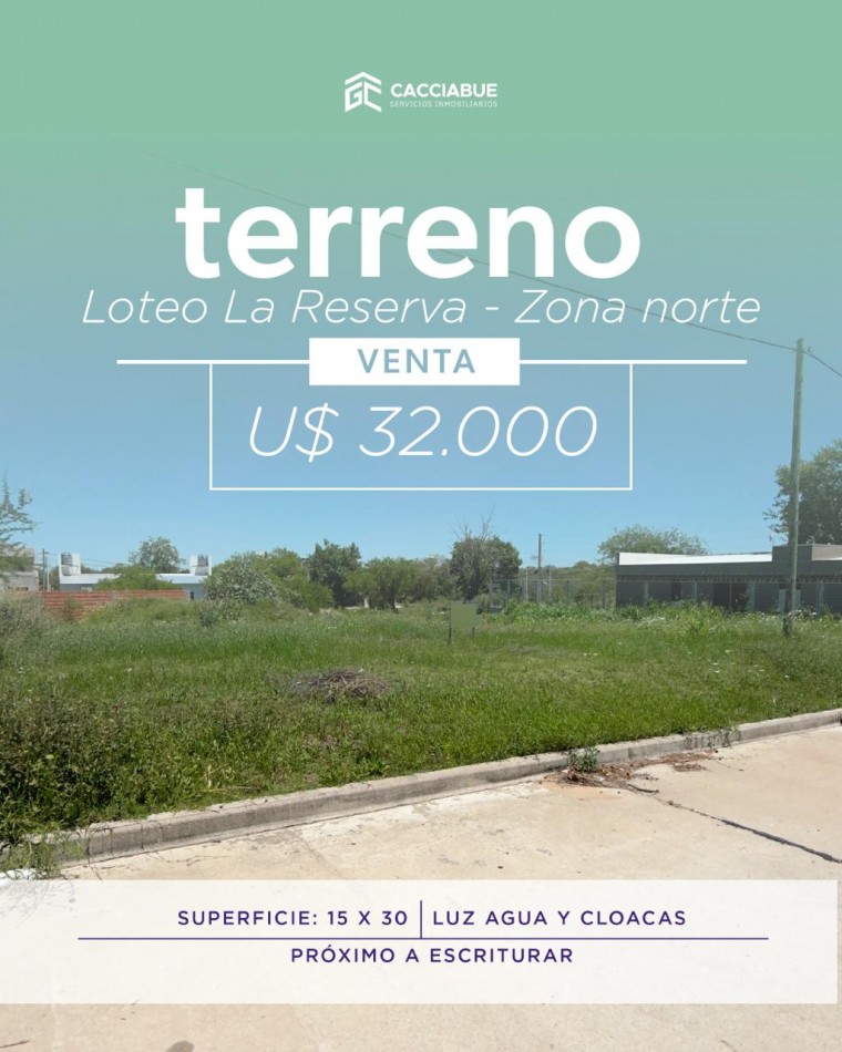 Excelente terreno ubicado en el Loteo de la Reserva, una de las zonas con mayor crecimiento y proyección de Zona Norte.